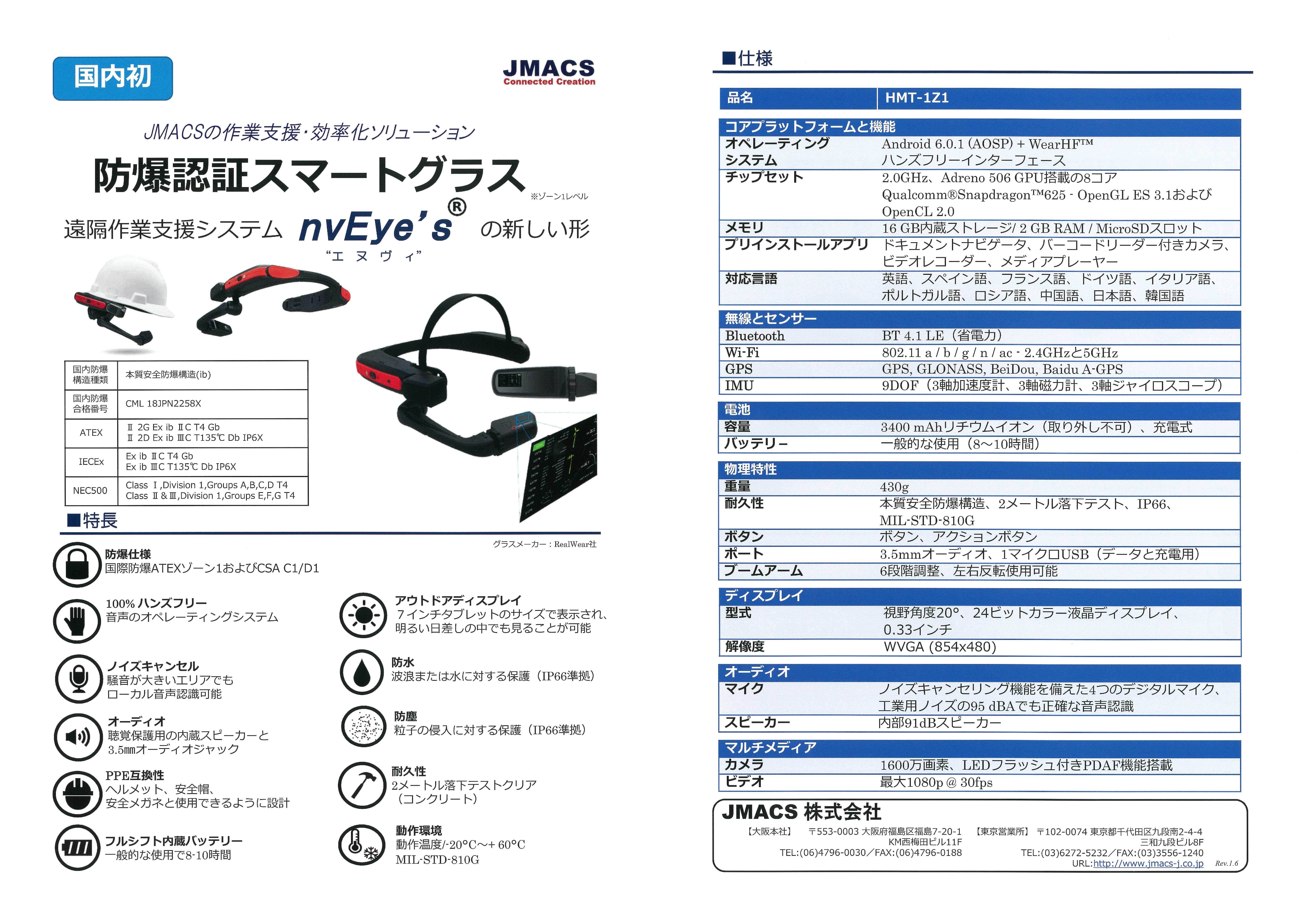 スマートグラスはオプションを選択することで防塵、防水、防爆とあらゆる環境に対応します。また、心配なバッテリーも駆動時間も8時間~と長時間稼働!