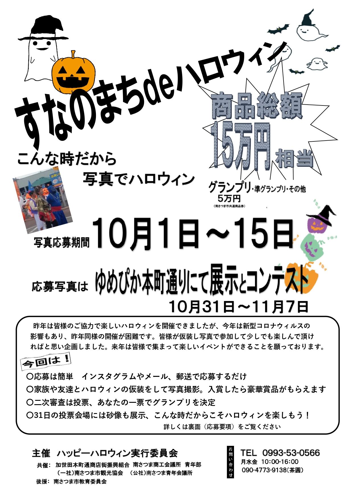 弊社地元の南さつま市にてハロウィンイベントが開催されます。毎年地元商店街の通りをイベント会場開催しておりましたが今年はコロナの影響もありフォトコンテスト形式での開催となります。