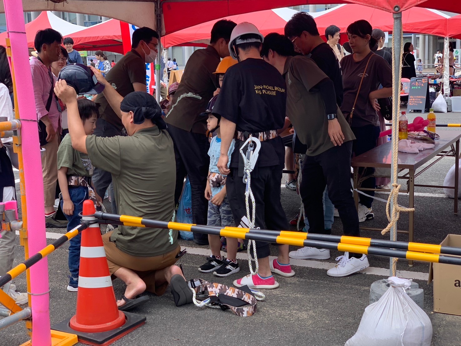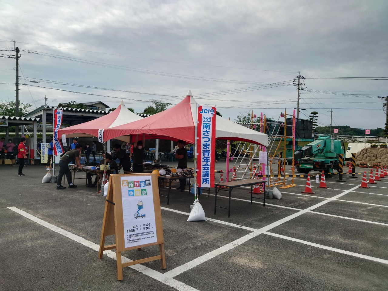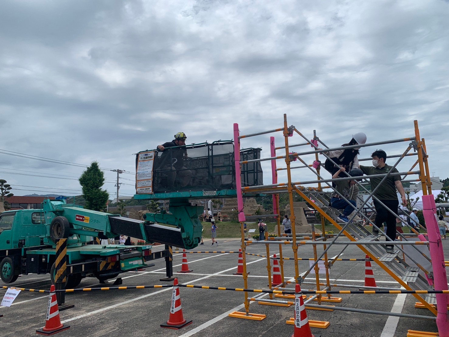 弊社が所属する南さつま青年会議所(JC)では高所作業車体験会を実施致しました。私もオペレーターとして乗り込み3日間車両操作に携わらせて頂きました。地上10mの高さから砂像や街並みを見下ろすといった非日常体験を大人から小さいお子さんまで楽しんで頂きました。