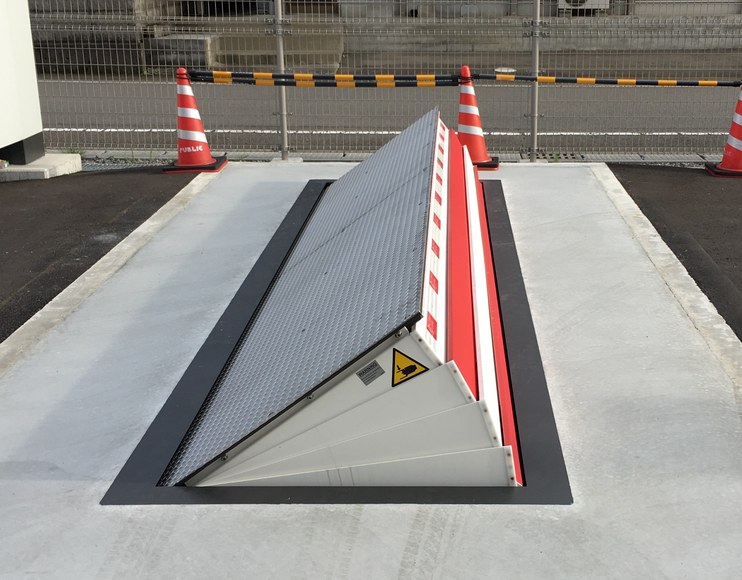 地中埋め込み式の本体によりその他のゲートに比べ圧倒的な突破阻止力を誇ります。ゲート解放時の高さを大型車両の車軸の高さと同じレベルに設計することで、たとえ大型トラックが強硬突入してきても車軸を破壊し、行動不能にします。